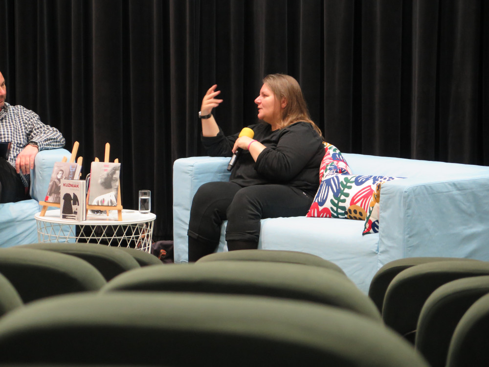 Podczas rozmowy z Piotrem Pawłowskim Autorka opowiadała o tym, kogo wybiera jako bohaterki swoich tekstów, czy istnieje klucz, według którego są dobierane, a także dla kogo pisze swoje publikacje. Nie zabrakło dyskusji o najnowszej książce pt. „Soroczka”, między innymi o tym, w jaki sposób Autorka dotarła do osób w niej opisanych. Słuchacze mieli także okazję dowiedzieć się, dlaczego w życiu Angeliki Kuźniak pojawiły się prasy hydrauliczne i jakie miały znaczenie.